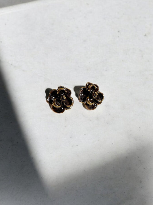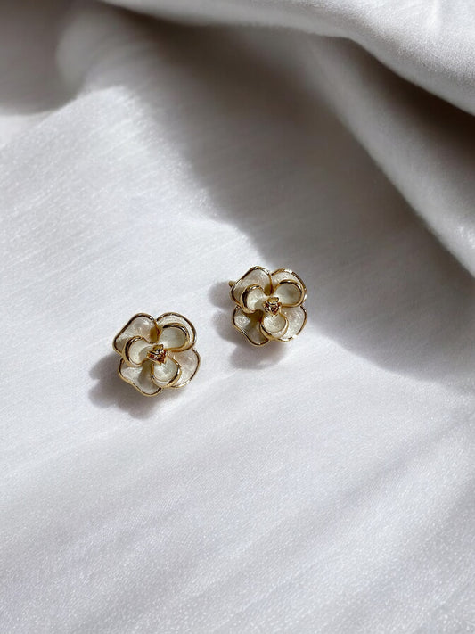 Elegant White Flower Stud Earrings with Gold Colored Detailing